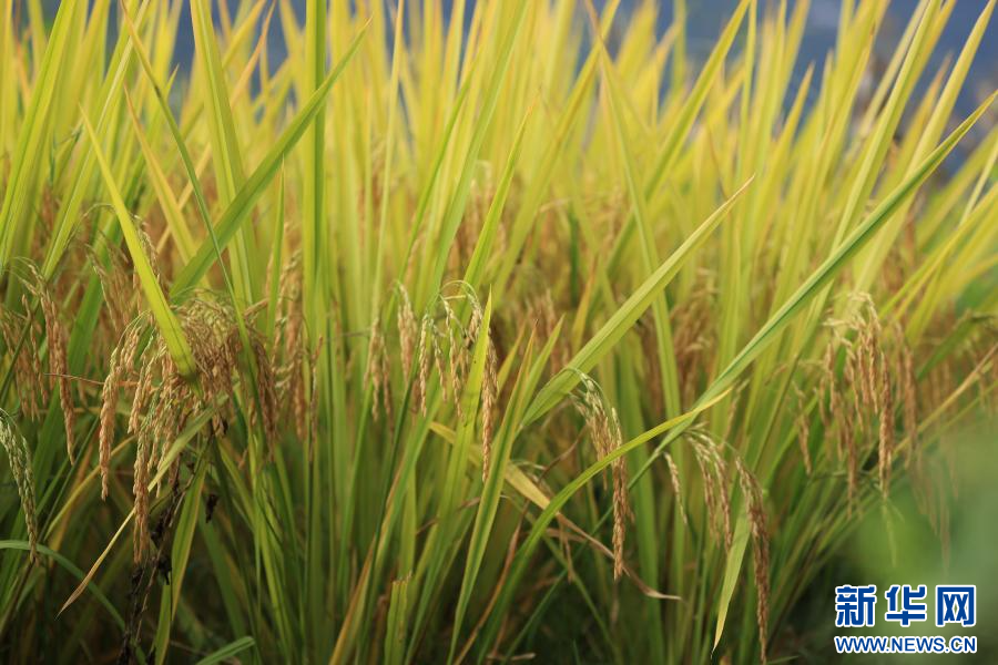 在大关县,饱满的稻穗压弯稻杆(摄于9月9日)。新华网发(龙梦 摄)