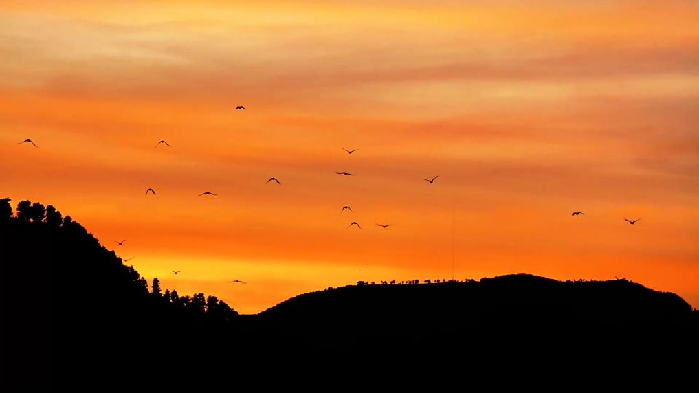 近日,摄影师在云南省会泽县的念湖畔拍摄了日落美景。夕阳西沉,霞光浸染天际,湖面泛起金色涟漪。群鸟翩跹飞越,霞光与云影和水纹交织,构成一幅美丽和谐的秋景图。