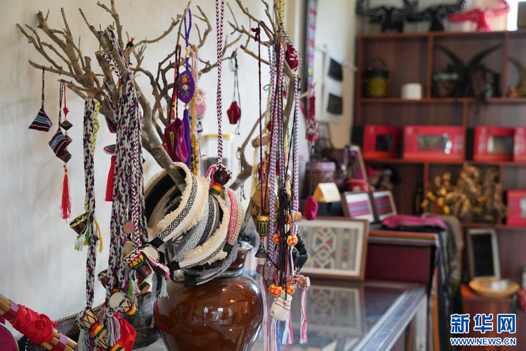 这是在白沙坡村民小组佤族织锦工坊拍摄的饰品(9月17日摄)。新华网发(高咏薇 摄)