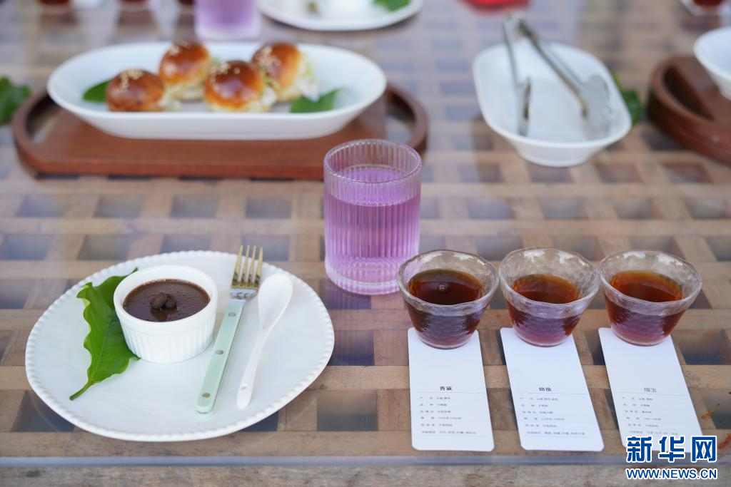 这是在白沙坡村民小组“美丽星村·有风咖谷”咖啡体验中心拍摄的咖啡和特色餐点(9月17日摄)。新华网发(高咏薇 摄)