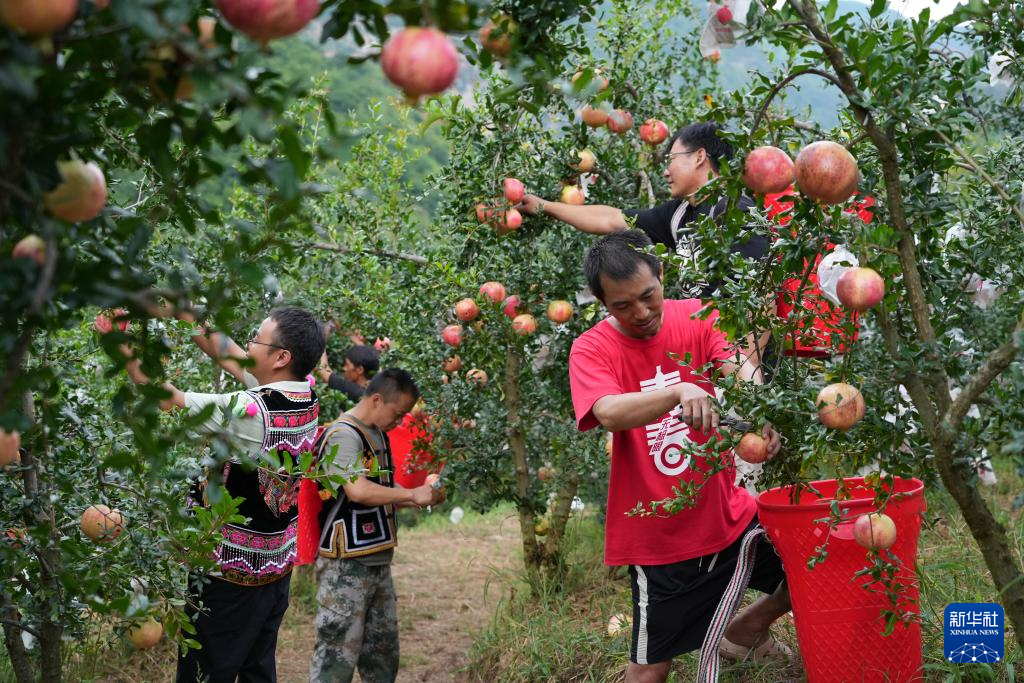 石榴种植基地迎来丰收景象,绘出一幅硕果累累的秋收画卷。石榴产业的发展不仅有效带动了农户增收,也为村集体经济注入新活力。