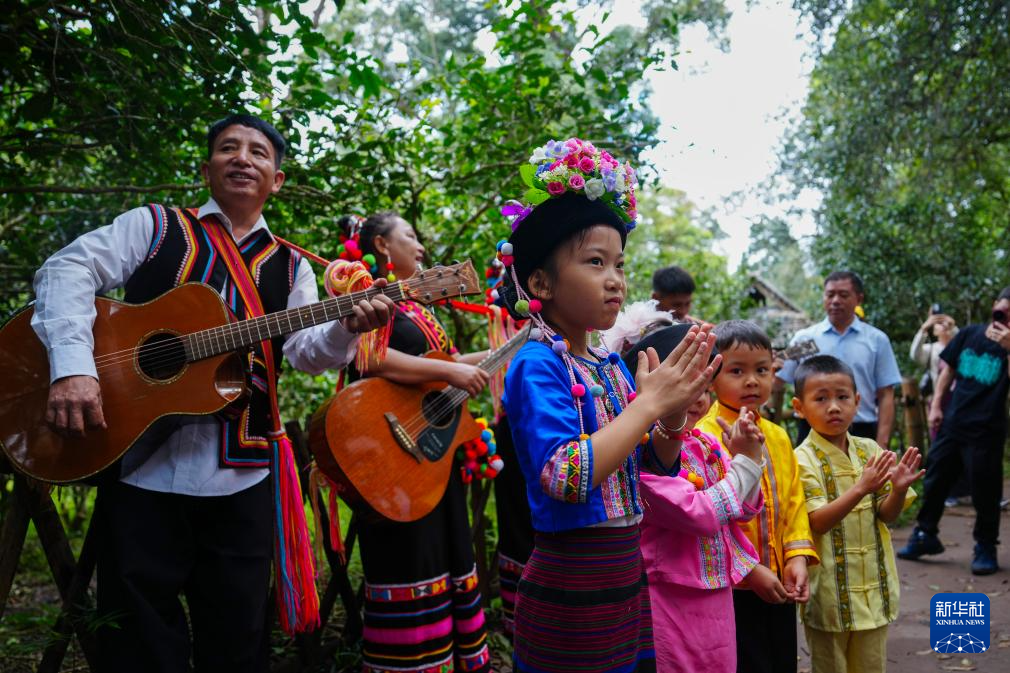 9月27日,演员在景迈山大平掌古茶园为游客表演。新华社记者 陈欣波 摄