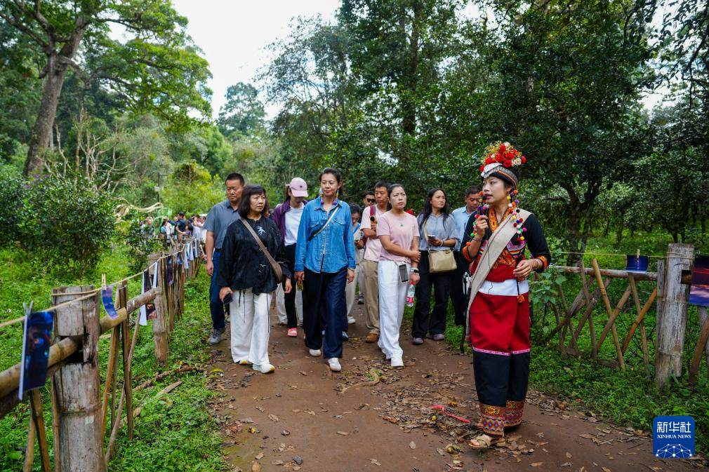 9月27日,游客在景迈山大平掌古茶园游览。新华社记者 陈欣波 摄