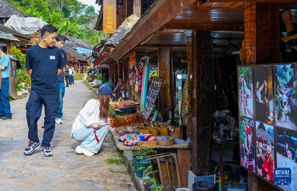 9月27日,游客在景迈山糯岗古寨游览。新华社记者 陈欣波 摄