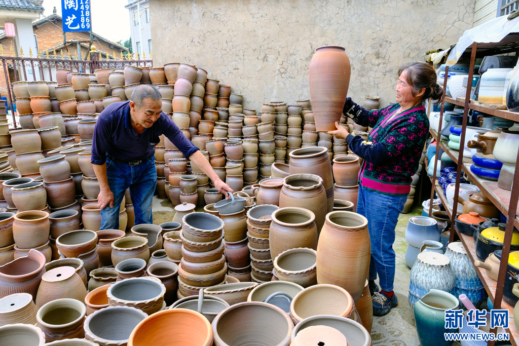 工人整理传统土陶产品(9月29日摄)。新华网发(张洪科 摄)