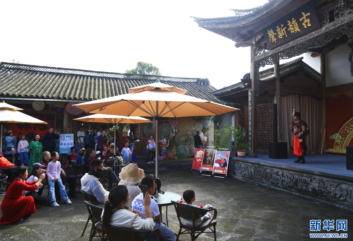 国庆中秋假期,人们来到云南省腾冲市和顺古镇游玩,游田园、逛古镇、看演出,享受假日快乐时光。(赵辉)