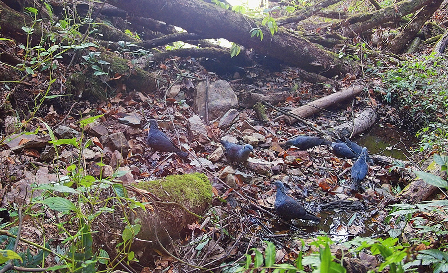 云南龙陵:鸟兽齐聚小水塘 饮水觅食和谐共生