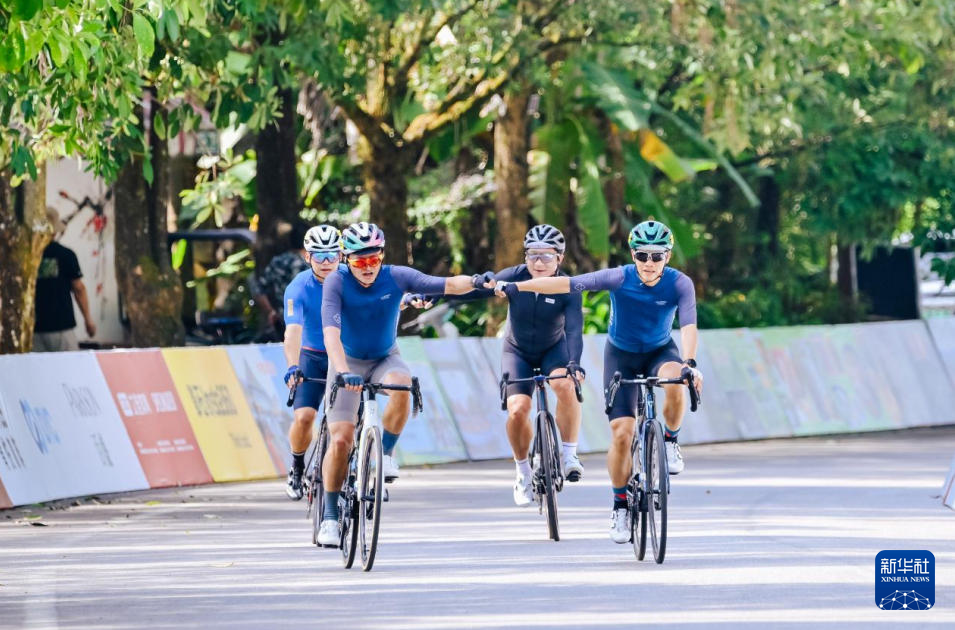 新华网昆明11月1日电(记者岳冉冉)10月31日,2025七彩云南格兰芬多自行车节双人计时赛在芒市孔雀湖畔上演首秀。
