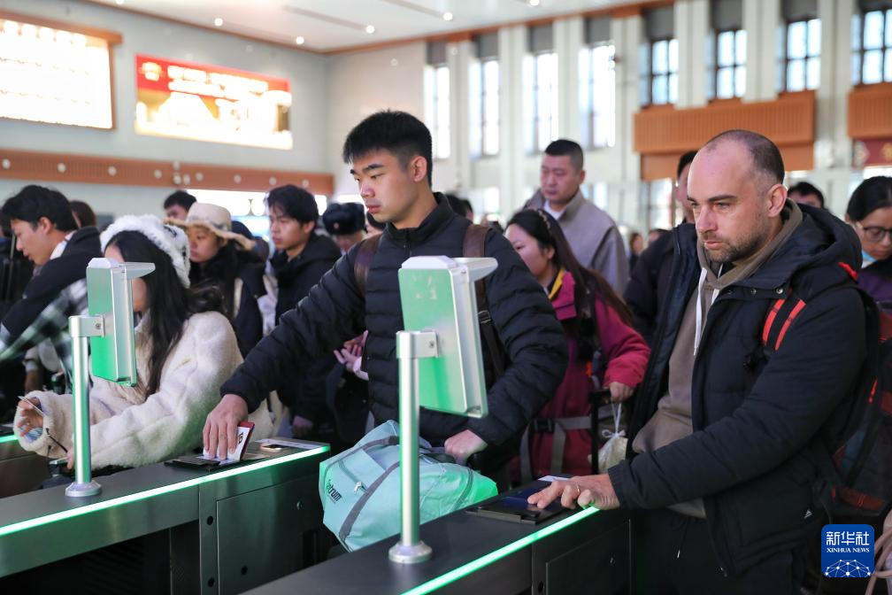 11月20日,旅客在云南香格里拉站通过检票口乘车。新华社发(杨紫轩摄)