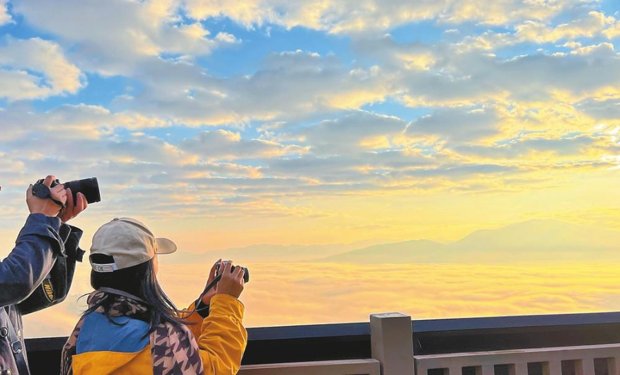冬季,普洱市景迈山进入云海季。得益于独特的古茶林生态系统,景迈山云海形成频率高、持续时间长,视觉层次丰富。在云雾笼罩下,景迈山古茶林进入一年中最重要的养息期,为开春的生长积蓄能量。来自各地的游客徒步茶林、登高观景、休闲康养,体验别有韵味的茶山冬日生活。