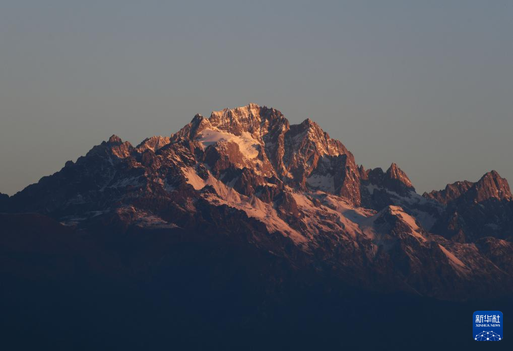 这是11月29日拍摄的玉龙雪山“日照金山”美景。新华社发(赵庆祖 摄)