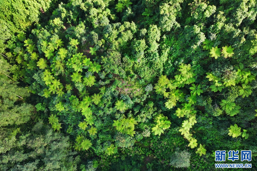 航拍镜头下的桫椤群(11月29日摄)。 新华网发(李开平 摄)