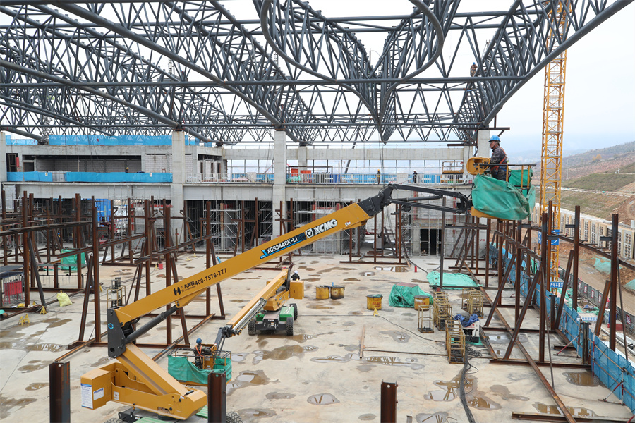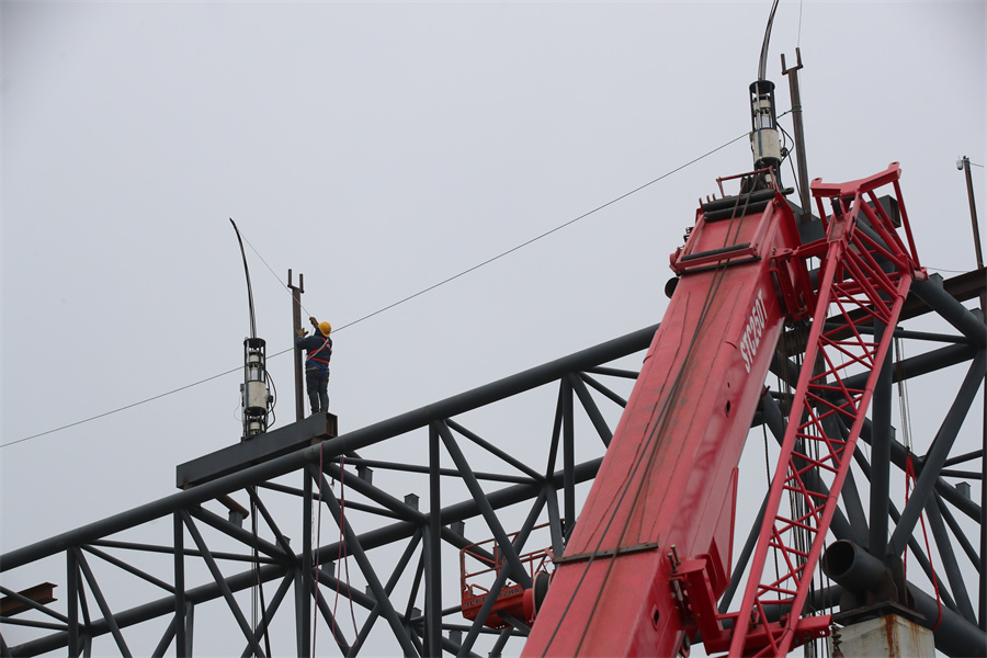 屋面钢桁架提升前准备工作(12月4日摄)。张广玉 摄