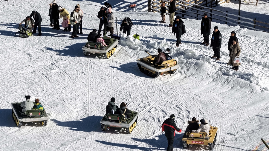 游客们驾驶“雪地坦克”(12月10日摄)。
