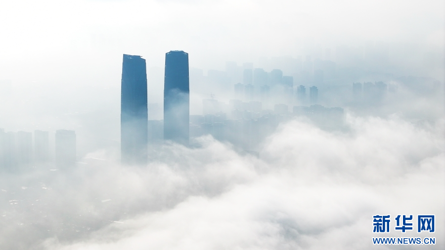 云雾中的昆明双子塔(摄于12月10日)。新华网 赵普凡 摄