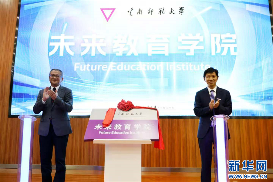 云南师范大学未来教育学院揭牌现场(5月30日摄)。新华网发(云南师范大学 供图)