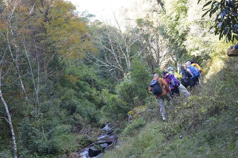 游客沿山路观赏红叶美景(11月29日摄)。张成志 摄