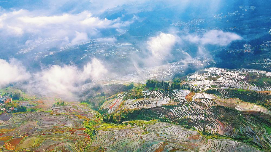 冬日,元阳哈尼梯田如万千银镜错落铺展,银波荡漾间,斑斓色彩交织辉映,宛如大地调色盘般的绝美景致吸引了全国各地的游客。每年11月至次年4月是哈尼梯田丰水期,也是最佳观赏时段。在梯田核心景区多依树景区,每天都有不少游客专程前来,定格梯田与晨光交融的瞬间。记者 黄翘楚 通讯员 方婷 张艳 摄