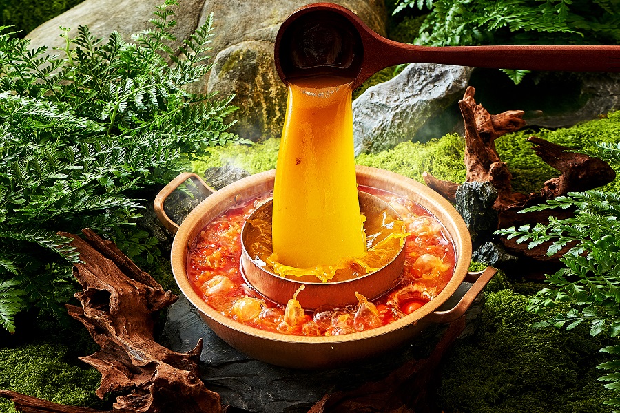 菌彩的子母铜锅设计,则是标准化体验的重要一环。它巧妙地解决了传统菌汤锅“清汤与浓郁风味难以兼顾”“等餐时间长”的痛点,内圈子锅熬煮野生菌,释放鲜香;外圈母锅可搭配云南特色锅底,满足不同口味需求,让顾客在等菌汤的同时也能享受美味。这一设计既提升了用户体验,也确保了菌汤的鲜美和营养。