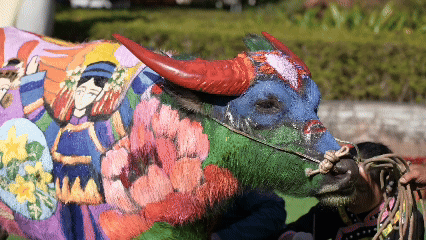 江城牛体彩绘源自防止猛兽侵害耕牛的民间传统,历经演变,如今已成为一门承载故事与祝福的流动艺术。艺术家以五彩画笔,在牛身上描绘美丽传说与美好愿景,延续着古老习俗与当代创意的交融。
