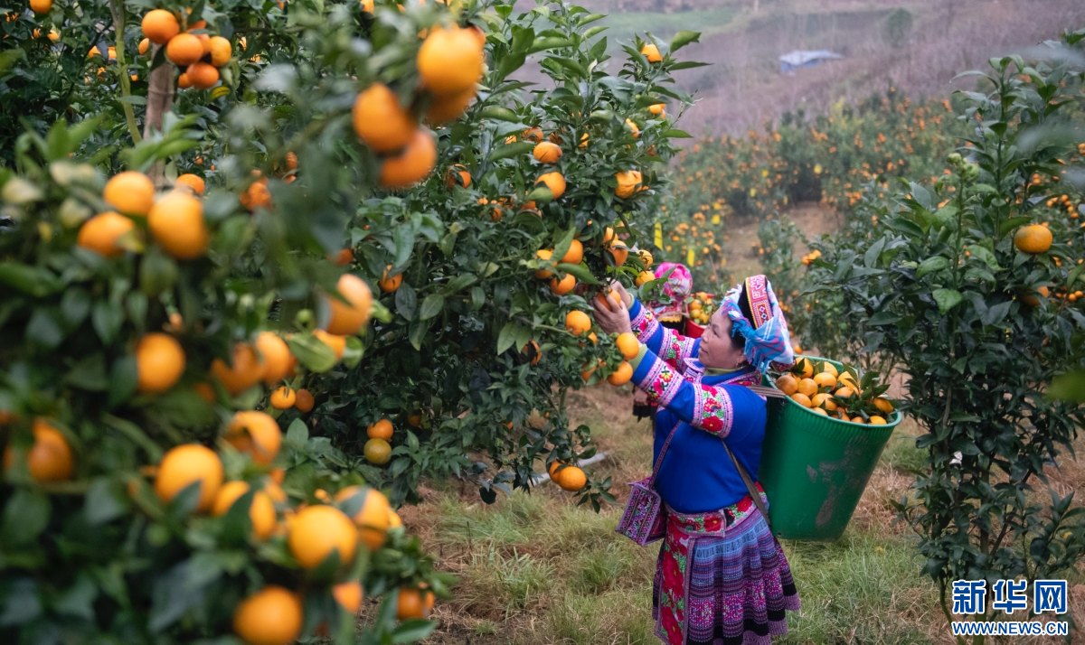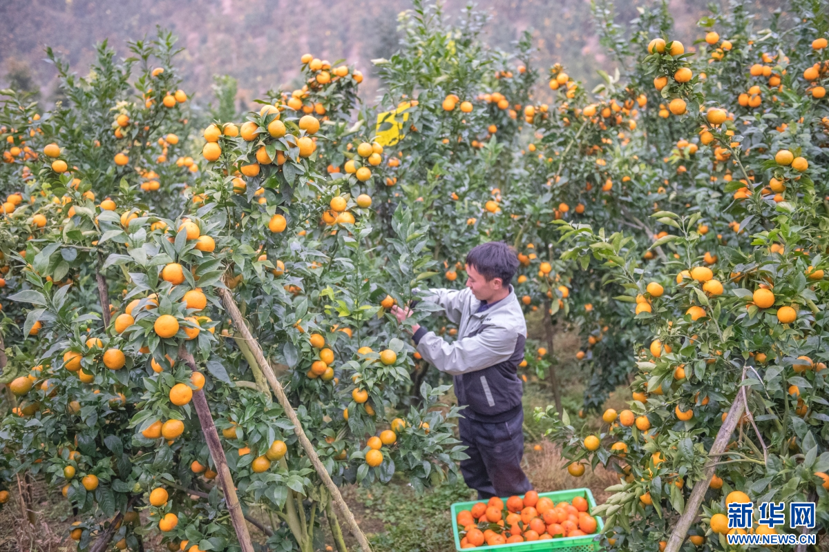 果农采摘橘子(2025年12月29日摄)。新华网发(熊平祥 摄)