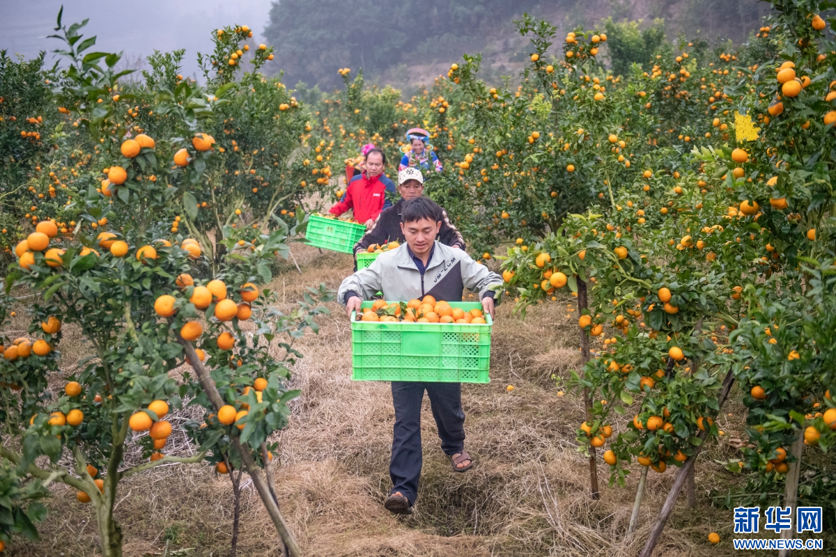 果农们搬运橘子(2025年12月29日摄)。新华网发(熊平祥 摄)