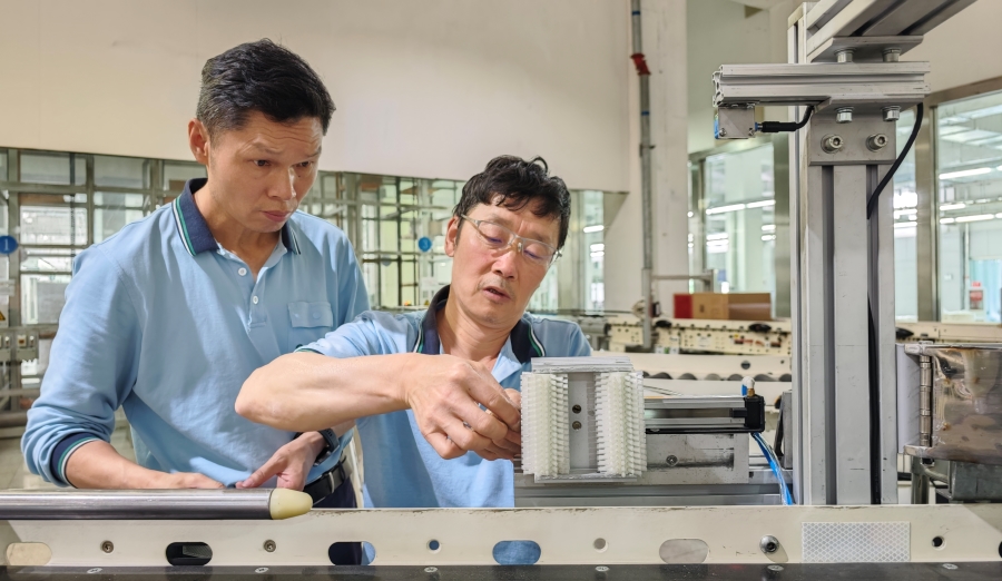 曾经,成品入库区系统老化,剔出的件烟堆积,一旦人手吃紧,就会引发上游停机。物流维修师何斌带领组员利用废旧零件,自主搭建全新缓存区。如今,成品入库区每小时可分拣3000件,工位增加4倍,作业高度降低、缓冲空间扩大。