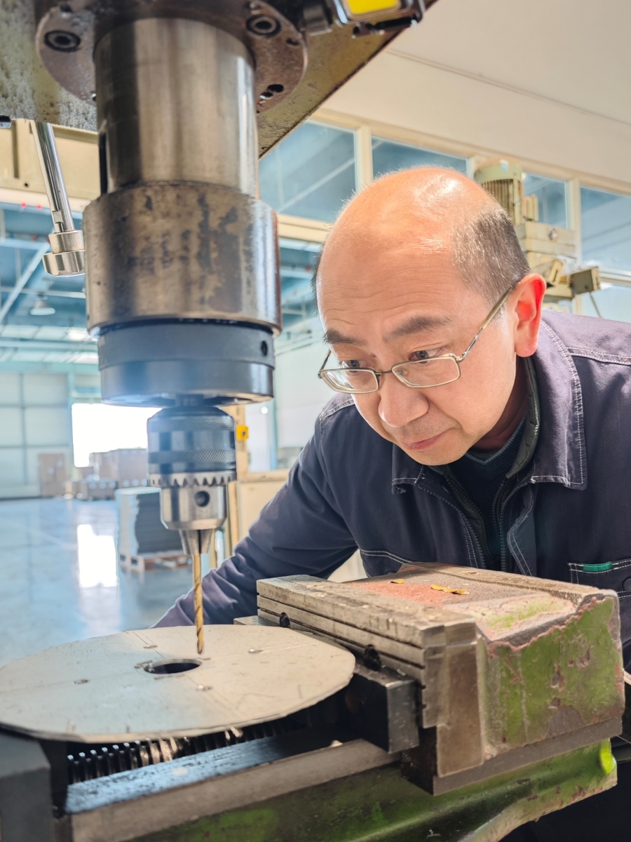 物流维修师正在加工翻箱机分度盘(资料图)。