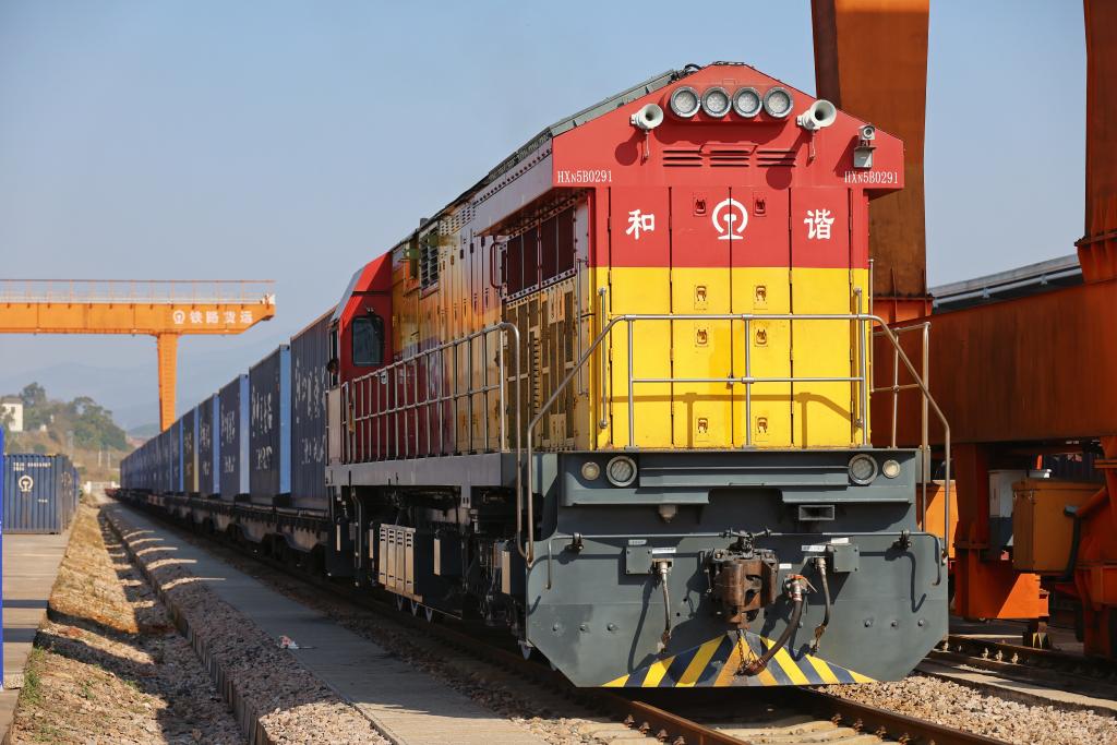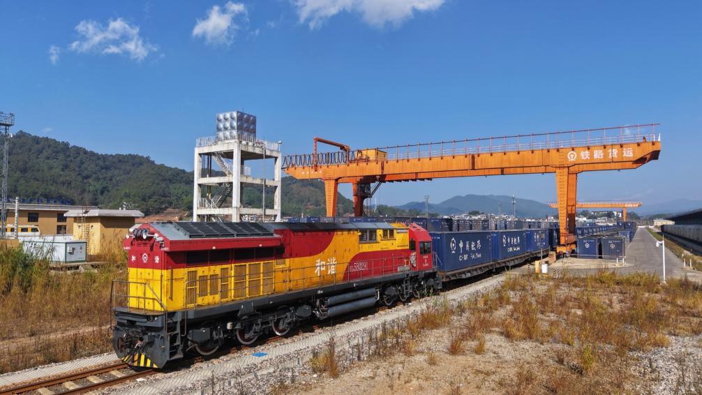 这是1月16日拍摄的中老铁路首趟咖啡豆货运专列。
