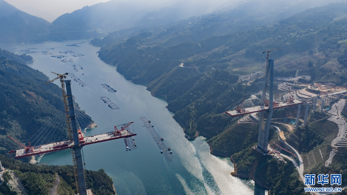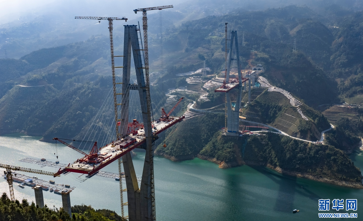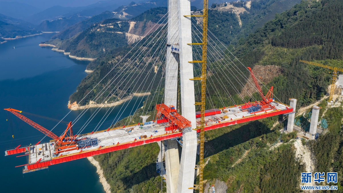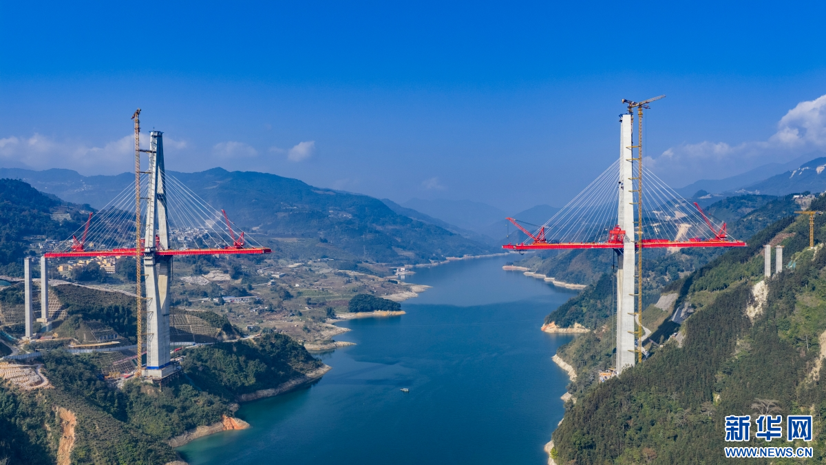 正在建设中的马鹿塘特大桥(1月20日摄)。新华网发(熊平祥 摄)