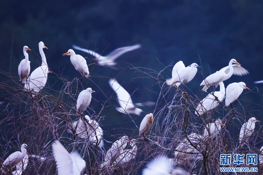 白鹭停驻在枝头(视频截图)。新华网发(施甸县融媒体中心供图)