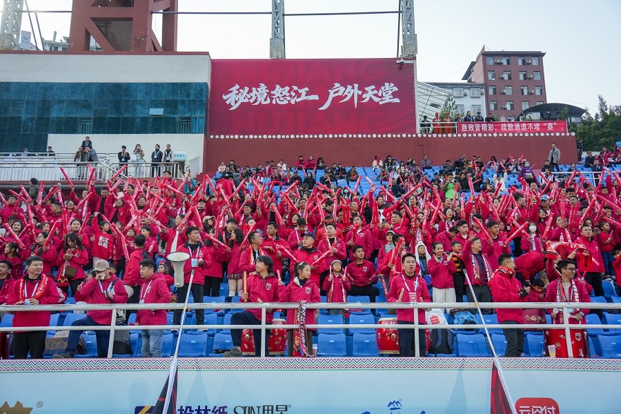 怒江球迷查师雅激动地说:“这是我观看的第三场滇超球赛,今天的比赛非常精彩,现场氛围很热烈,观众很热情,能在这里和大家一起为球队加油,感受这样的足球氛围非常开心。”(完)