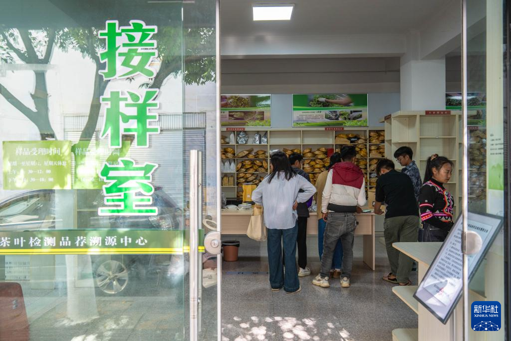 1月23日,茶农在临沧市双江县茶叶检测品荐溯源中心送样、登记茶叶。新华社记者 高咏薇 摄