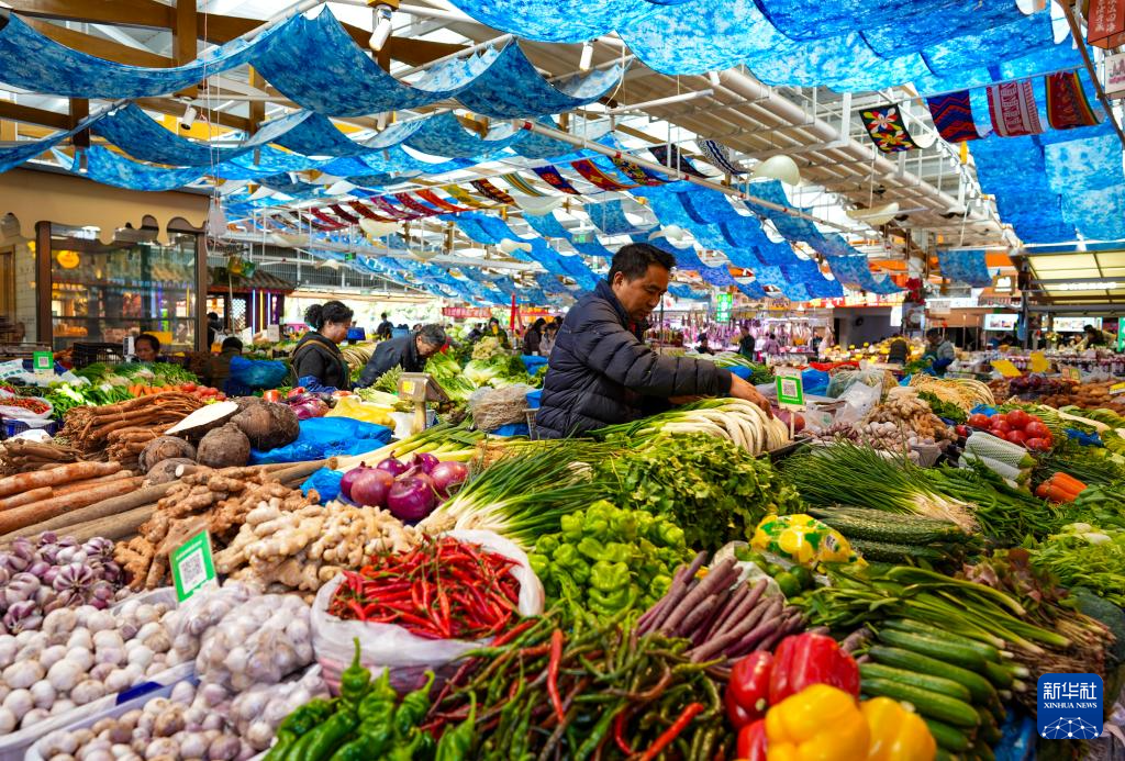 1月27日,在昆明大观篆新农贸市场,摊主在整理蔬菜。新华社记者 陈欣波 摄