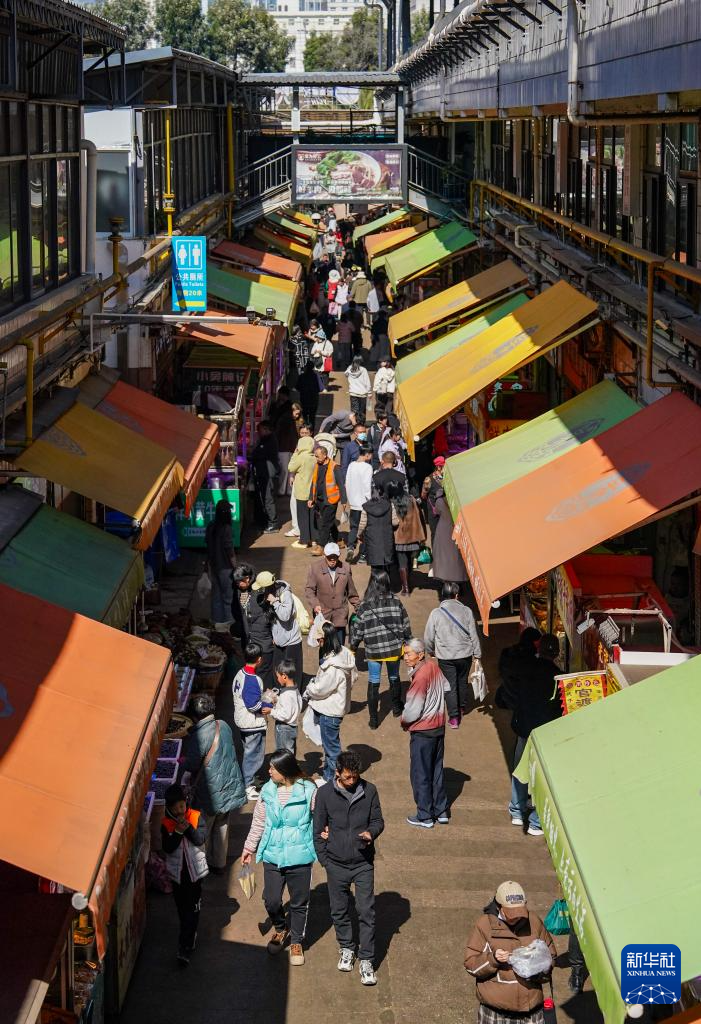 1月27日,人们在昆明大观篆新农贸市场内游览、购物。新华社记者 陈欣波 摄