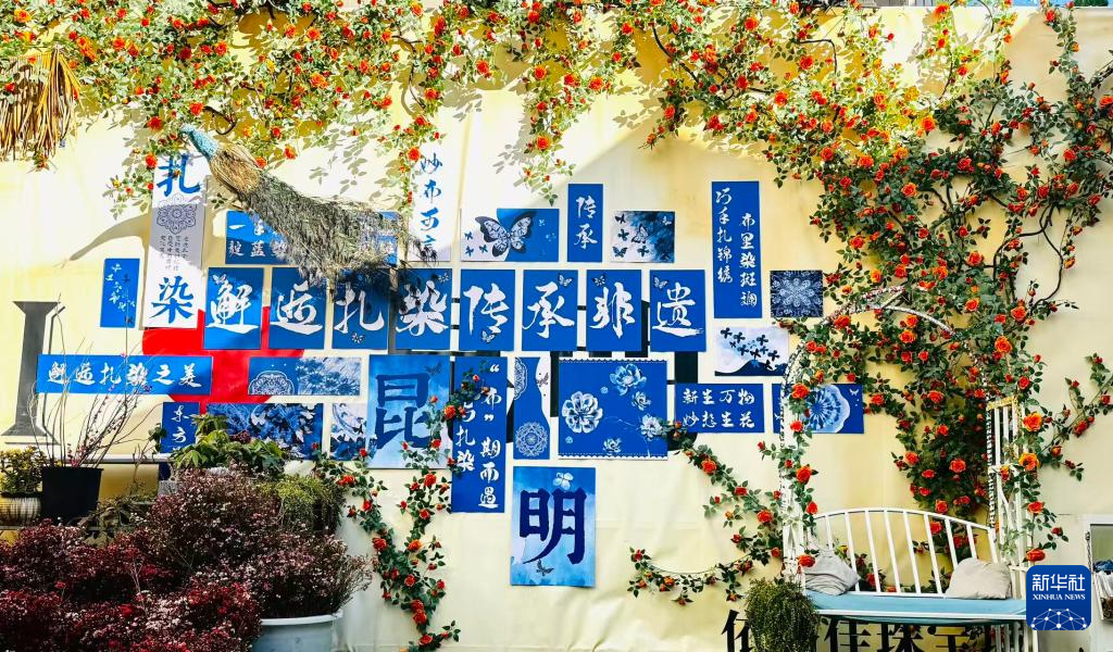 门店里陈列着衣服、包包、挂饰等各种扎染作品,游客也可以亲手尝试扎染。李云会根据客人时间推荐体验项目,为其讲解图案背后的故事。“看着越来越多的年轻人在这里接触并喜欢上扎染,我觉得把店开在这里很值得,老手艺也能在这里传承。”李云说,依托昆明老街的人气,如今店里每天能接待300人次的游客。