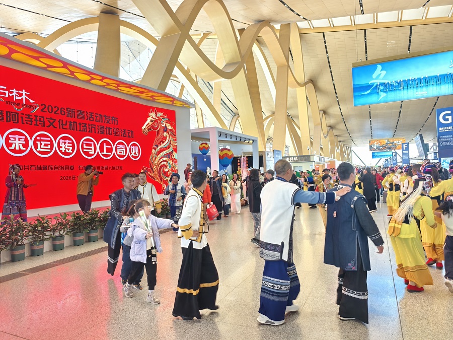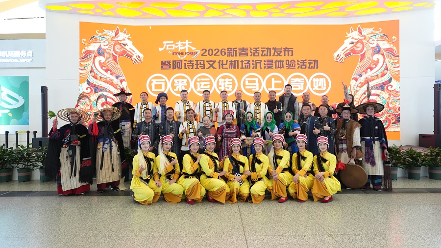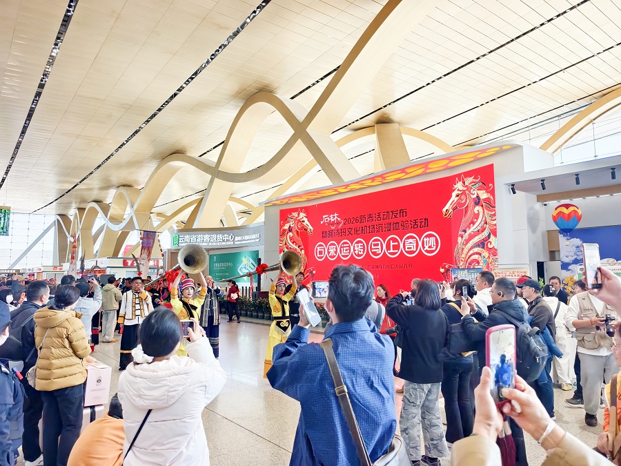1月29日,“石来运转·马上奇妙”石林2026新春活动发布暨阿诗玛文化机场沉浸体验活动在昆明长水国际机场举行。春节期间,云南省昆明市石林彝族自治县将推出覆盖景区、县城、乡镇的30余项新春活动,邀游客前来过大年,体验“有一种叫云南的生活”。