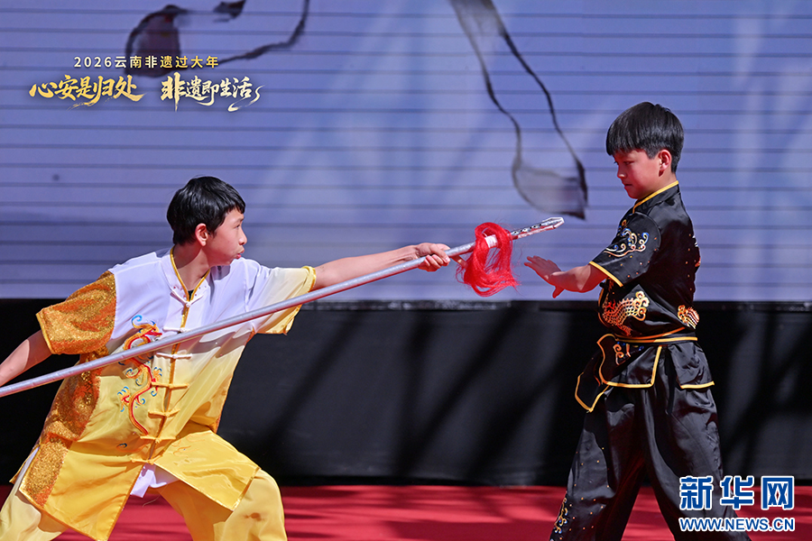 在2月1日的活动现场,“桃花流水—非遗展演大观园”带来了一场关于云南传统体育的展演,沙式武术、云南燕青拳、云南查拳、昭通清拳等一系列传统体育表演展现了云南深厚的体育文化底蕴。其中,沙式武术创始人沙国政的儿子沙俊杰与妻子、子女,以及孙子、孙女一同表演,三代同台展示沙氏武术。