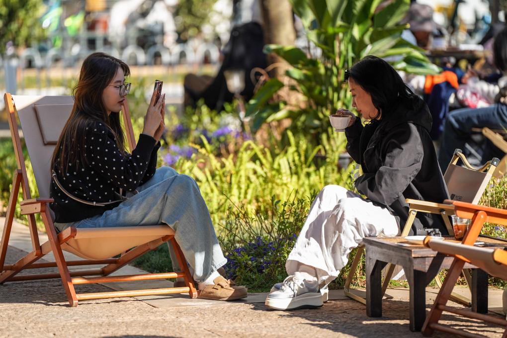 鲜红的玫瑰花瓣在乳白的椰奶里翻腾,筷子一挑,肉片和青菜出锅。“鲜花火锅别有一番风味!之前来云南,我和亲友经常吃的是菌子火锅,这家以鲜花为原料入菜的火锅店,把鲜花这一‘土特产’吃出了时尚味。”四川游客钱彤彤说,她和亲友还点了酥炸南瓜花、玫瑰拿铁。