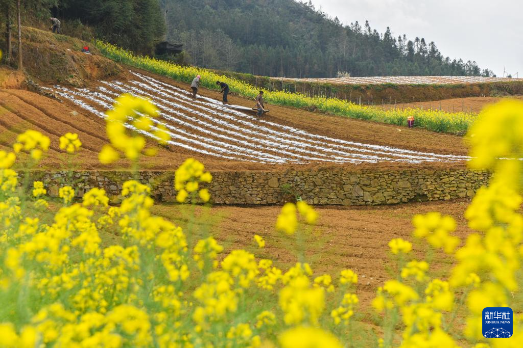 2月27日,在云南省文山壮族苗族自治州文山市东山乡,村民在田间劳作准备栽姜。新华社发(熊平祥摄)