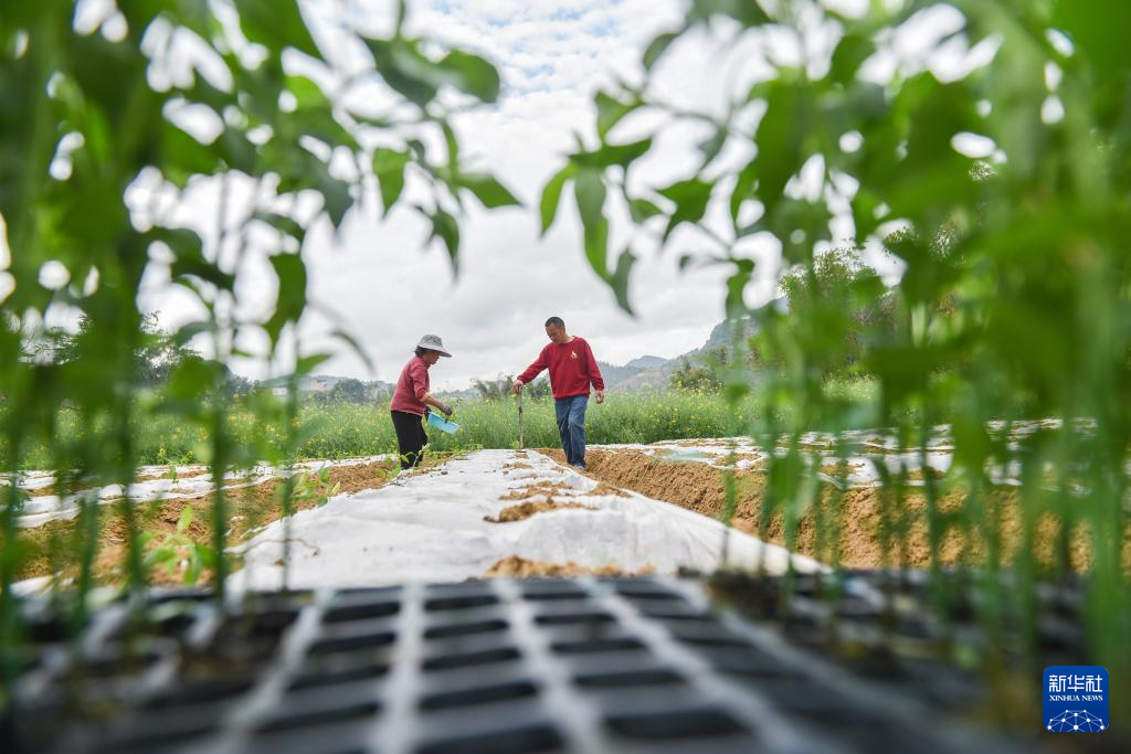 2月27日,在云南省文山壮族苗族自治州马关县马白镇文华村,农民在田间种植辣椒。新华社发(查宇波摄)