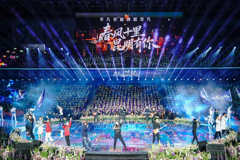新华网3月2日电 3月1日晚,作为“春风十里 昆明有你”群众性文化活动的重要成果展示,“平凡亦能铸就非凡——我就是滇风”盛典晚会在昆明新亚洲体育城星耀体育馆举行。晚会聚焦环卫工人、快递员、医务工作者等基层奋斗者,以27组普通群体的真实故事诠释城市温度,展现昆明践行“人民城市人民建、人民城市为人民”理念的生动实践。