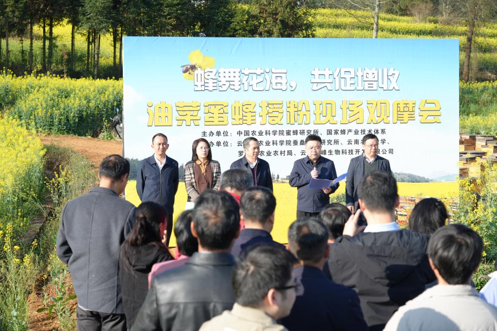 新华网昆明3月3日电 由中国农业科学院蜜蜂研究所、国家蜂产业技术体系主办,云南省农业科学院蚕桑蜜蜂研究所、云南农业大学、罗平县农业农村局和云南腊峰生物科技开发有限公司协办的“蜂舞花海,共促增收”油菜蜜蜂授粉现场观摩与研讨会日前在云南省罗平县成功举办。