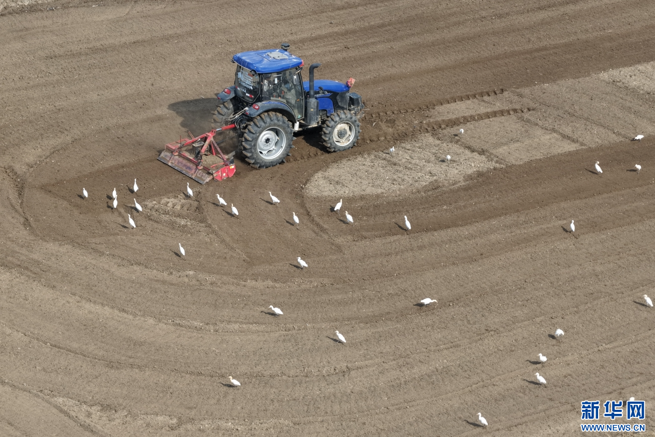 2月28日,在云南省腾冲市西源街道油灯庄村,农民正在驾驶农机平整土地。新华网发(龚祖金 摄)