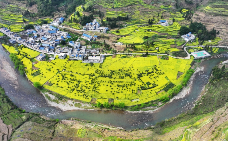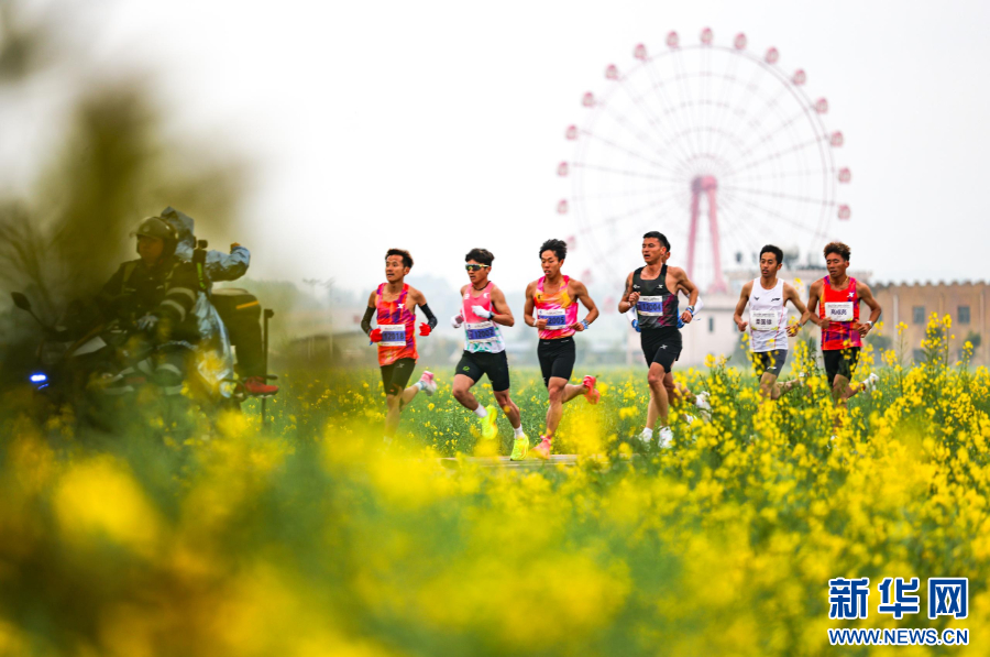 跑者穿行于油菜花海旁(3月15日摄)。新华网发(赛事组委会供图)