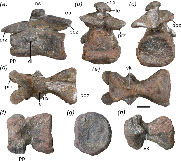 图为凤鸣祥云龙中后部颈椎化石。(中国科学院古脊椎动物与古人类研究所供图)