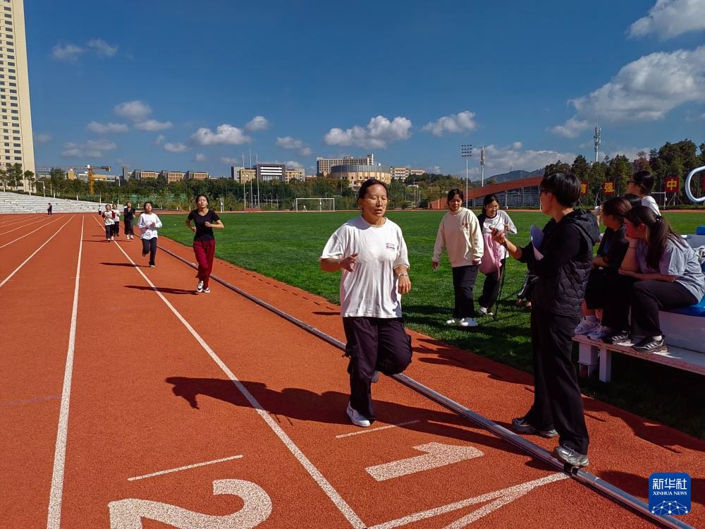 云南大学学生在进行体测。新华社记者 岳冉冉 摄