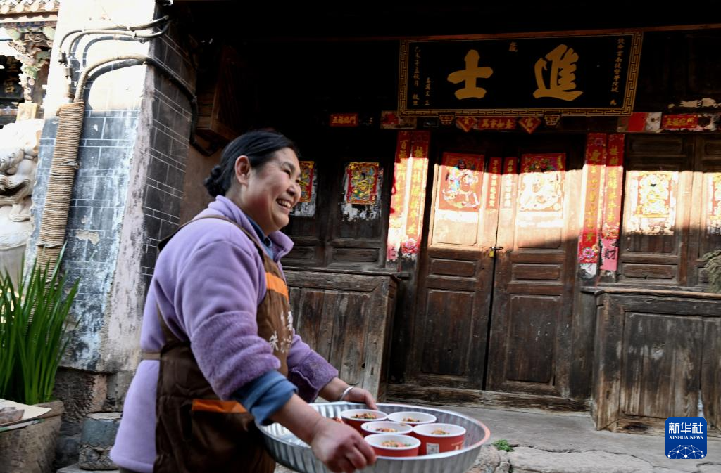 2026年3月24日,村民走在白雾村的古街上。