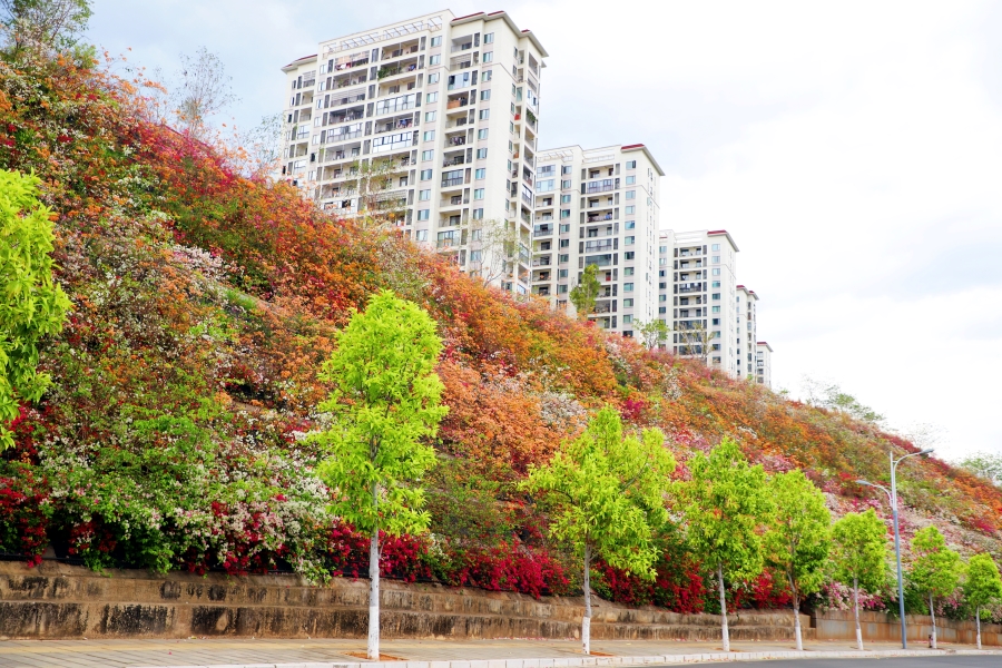 巧家县地处金沙江干热河谷地带,年均温度21℃。近年来,依托这一气候优势,巧家县累计种植三角梅20余万平方米,涵盖红心樱花、加州黄金、绿叶玫红等15个品种,打造“一街一景、四季有花”的城市景观。同时,巧家县凭借当地三角梅花期长达200天的优势,实现城市生态颜值长期在线,成功将其转化为拉动文旅消费的特色名片。