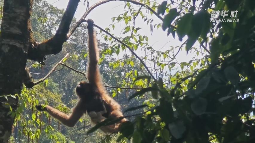 近日,科研监测人员在云南无量山国家级自然保护区景东彝族自治县辖区,监测到西黑冠长臂猿母猿携新生幼崽活动,清晰记录下母猿林间哺乳育幼的画面,幼崽生长状况良好。